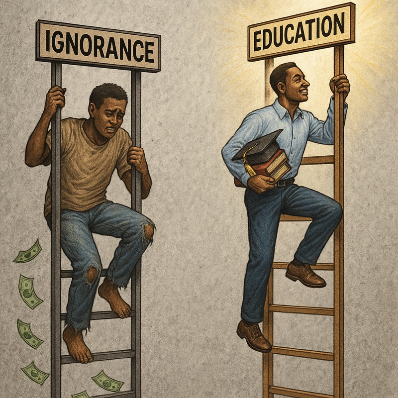 Education transforms a cell into a classroom, a struggle into strategy, a name into a legacy. That’s the real wealth no one can confiscate. Ignorance keeps us renting space in systems that were never built for our liberation. Education hands us the blueprint to build our own.